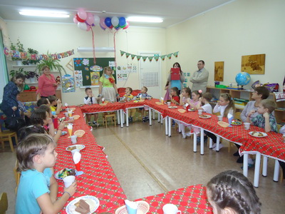 По доброй традиции детского сада 9 октября состоялось празднование Дня рождения подготовительной группы. Праздник прошел очень весело: с играми, песнями, танцами, праздничным караваем и, конечно, с подарками для группы!